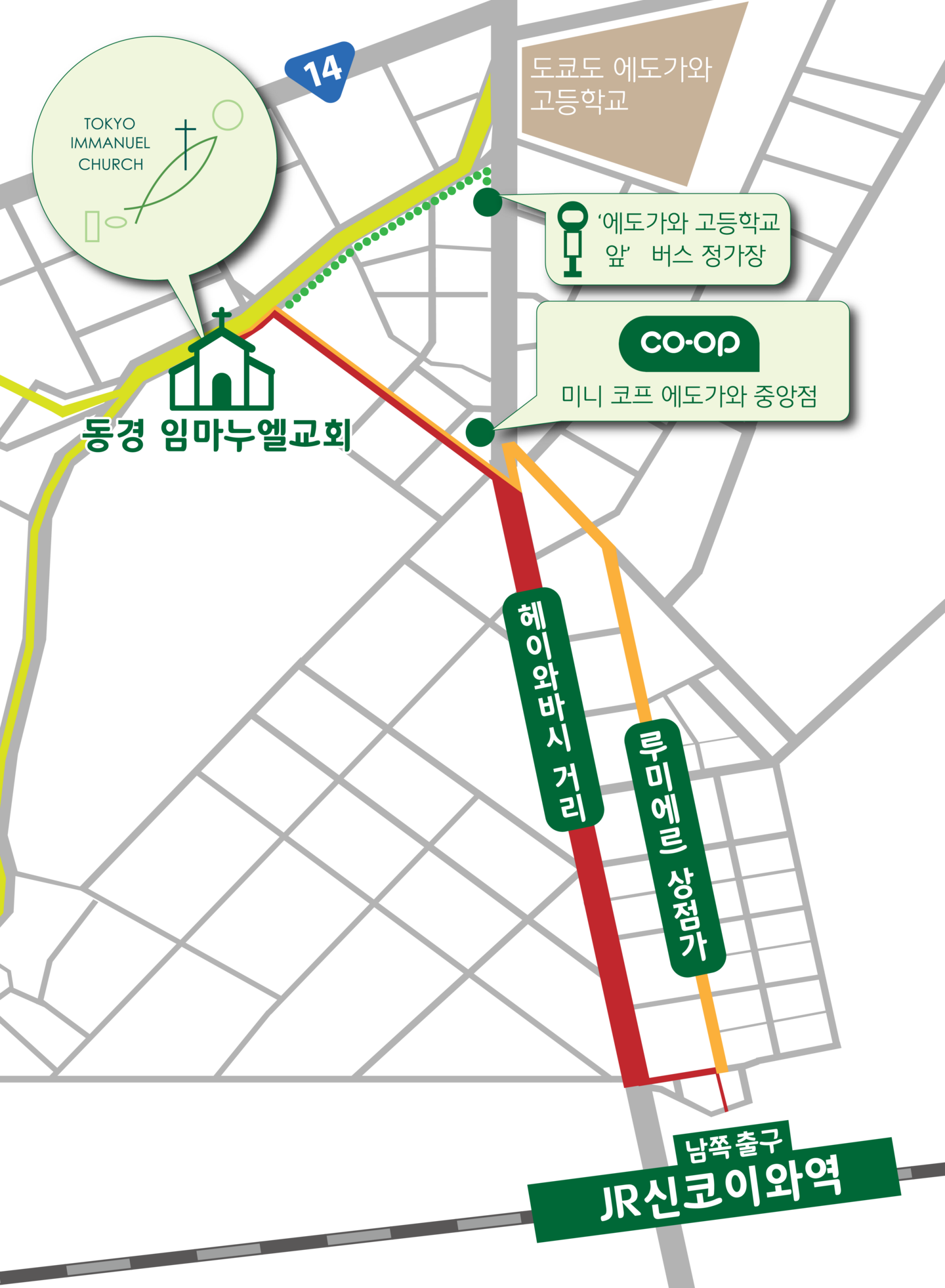 신코이와역에서 저희 교회까지 찾아오시는 길